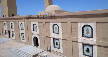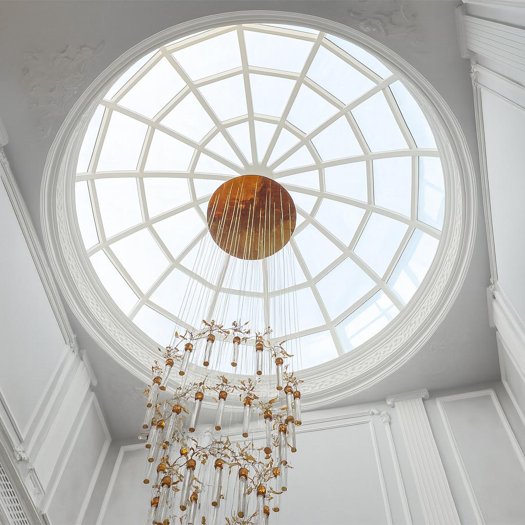 تم تنفيذ القبة باستخدام قطاعات ألمنيوم إنشائية عالية المتانة بسماكات تتراوح من 2 مم إلى 5 مم ومشكلة بدقة لضمان مقاومة ممتازة للرياح والعوامل الجوية مع الحفاظ على مظهر بصري أنيق ومتناسق مع الطراز الكلاسيكي للمكان