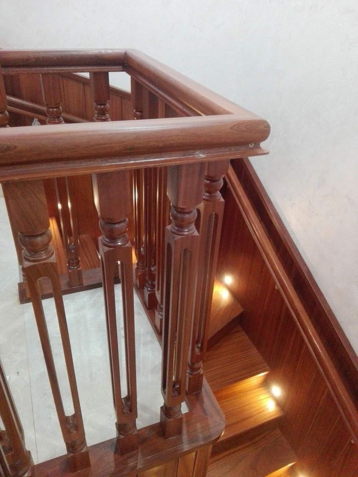 دربزين بأعمده خشبيه مستقيمة ومتفرغه من الخشب الماجنو