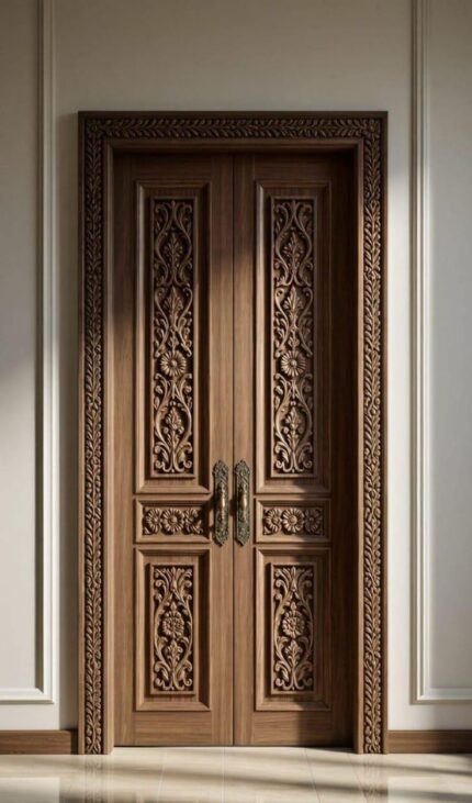 باب خشبي بتصميم كلاسيك ممن الخشب الماهوجني
