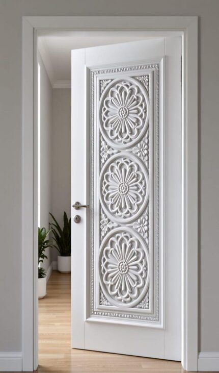 باب خشبي بتصميم كلاسيك من خشب السنديان وحفر ديكور من الخشب الطبيعي